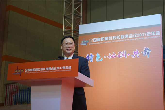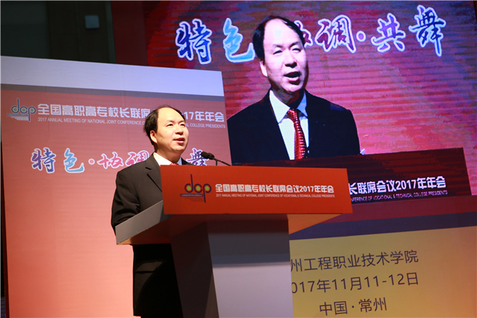 11日上午,高职高专校长联席会议2017年年会开幕仪式在学院体育馆举行。出席会议的领导有——教育部职业教育与成人教育司司长王继平,江苏省教育厅副厅长王成斌,教育部职业教育与成人教育司副司长谢俐,常州市委常委、宣传部长、科教城党工委书记徐光辉,常州市副市长方国强,高职高专校长联席会议荣誉主席李进,中国职业技术教育学会常务副会长兼秘书长刘占山,新疆维吾尔自治区教育厅副厅长海萨尔•夏班拜,江苏省教育厅副巡视员袁靖宇,教育部教育管理信息中心副主任曾德华,高职高专校长联席常务副主席张慧波,校长联席会议顾问、西安交通大学原副校长于德弘,校长联席会顾问、上海市教育科学研究院原院长马树超,校长联席会议顾问、教育部职教中心研究所研究员姜大源,职业院校教学工作诊改专家委员会主任杨应崧,中国职业技术教育学会副会长俞仲文,江苏省高等教育学会会长丁晓昌,中国高等教育学会职业教育分会会长周建松,现代学徒制工作专家指导委员会主任赵鹏飞,中国职业技术教育学会装备专业委员会主任李瀛,常州市科教城管理委员会副主任陆金林等领导、嘉宾、与会人员参加了开幕式。开幕式由高职高专校长联席会议主席董刚主持。